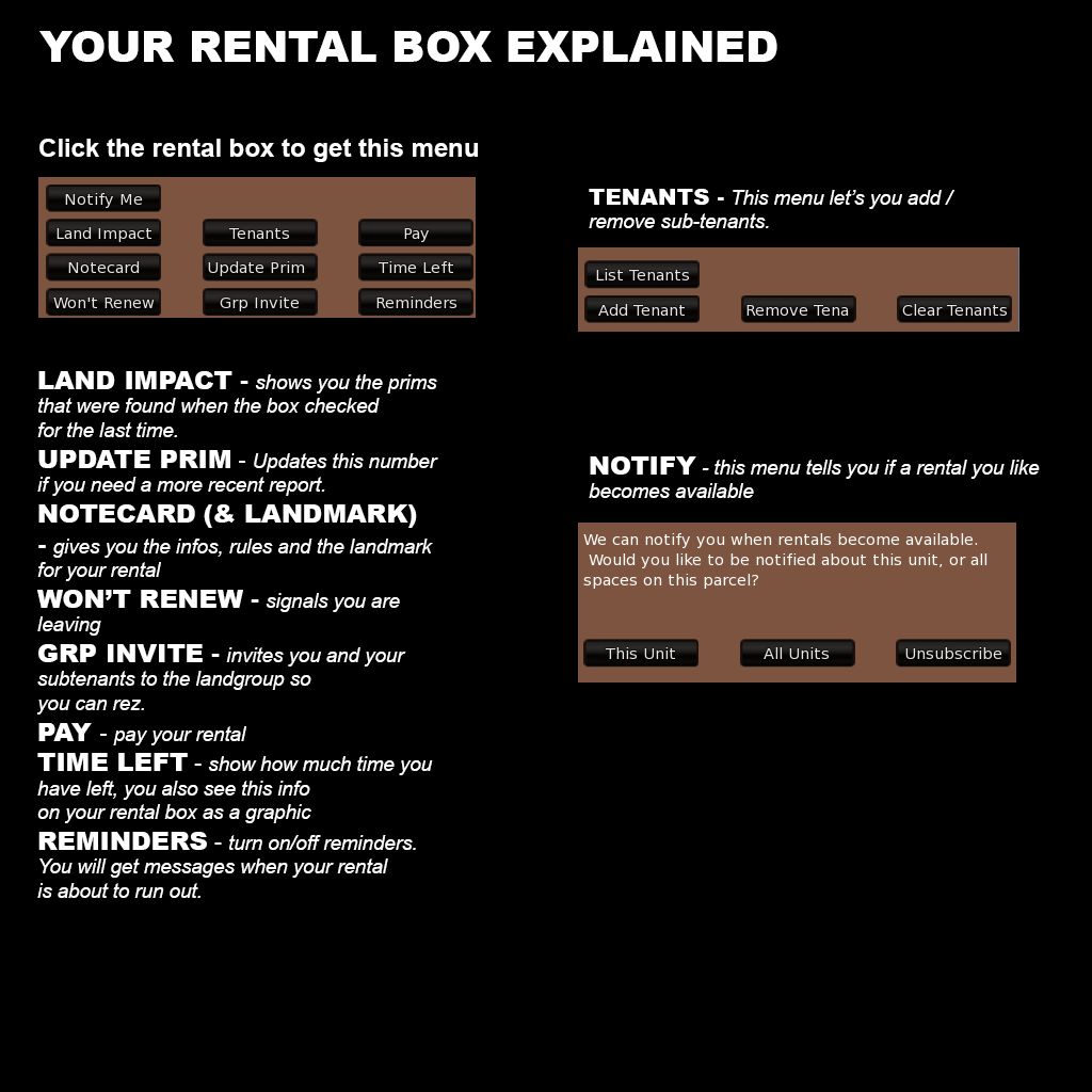 - Click your rental box and click the "Notecard" button, this gives you the info notecard and the direct teleport to your rental. This LM circumvents the landing point and is always direct. A good option is of course also to put your homepoint at your rental.